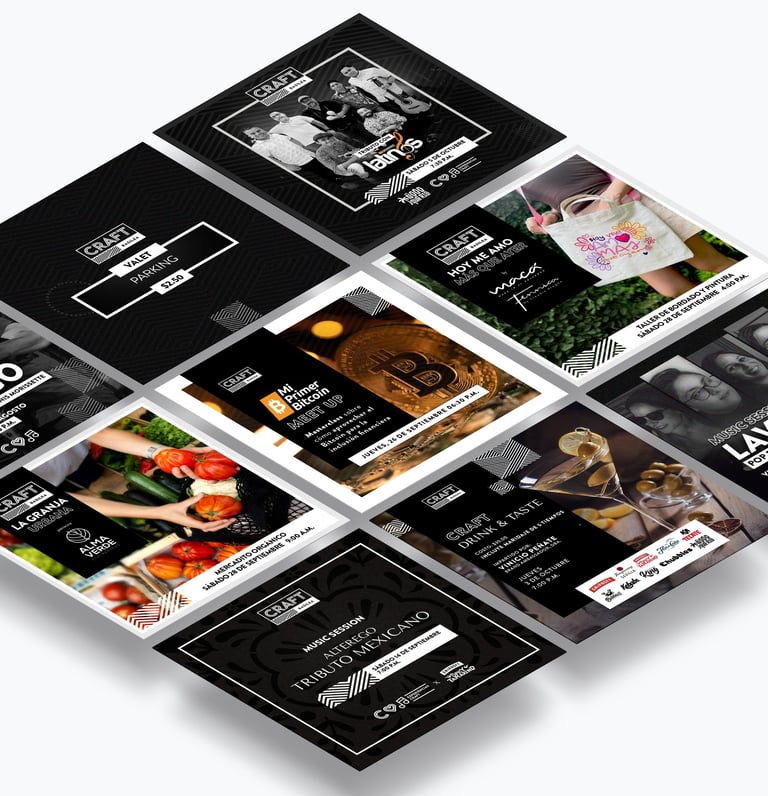 Darle un aire fresco a la imagen visual de las redes de Craft para promocionar una gran variedad de eventos, desde conciertos hasta mercados orgánicos, pasando por propuestas gastronómicas y de compras, y transmitir esa sensación de que Craft es el lugar perfecto para pasar un buen rato con amigos.