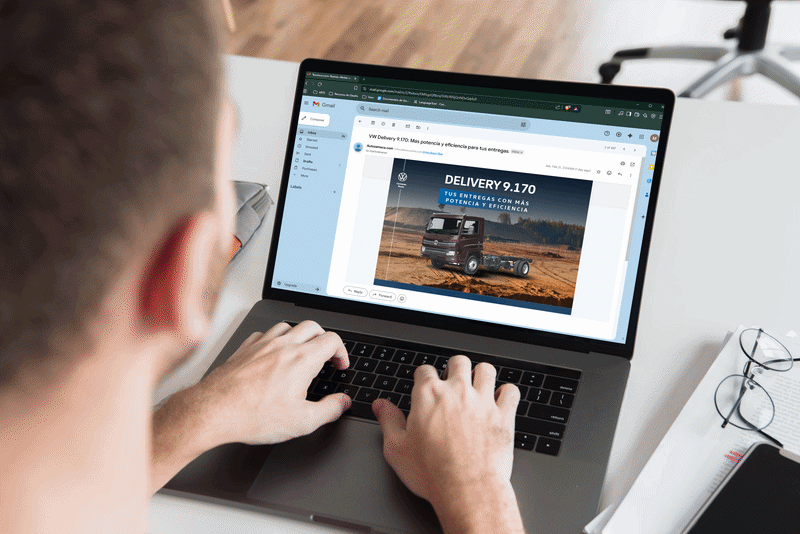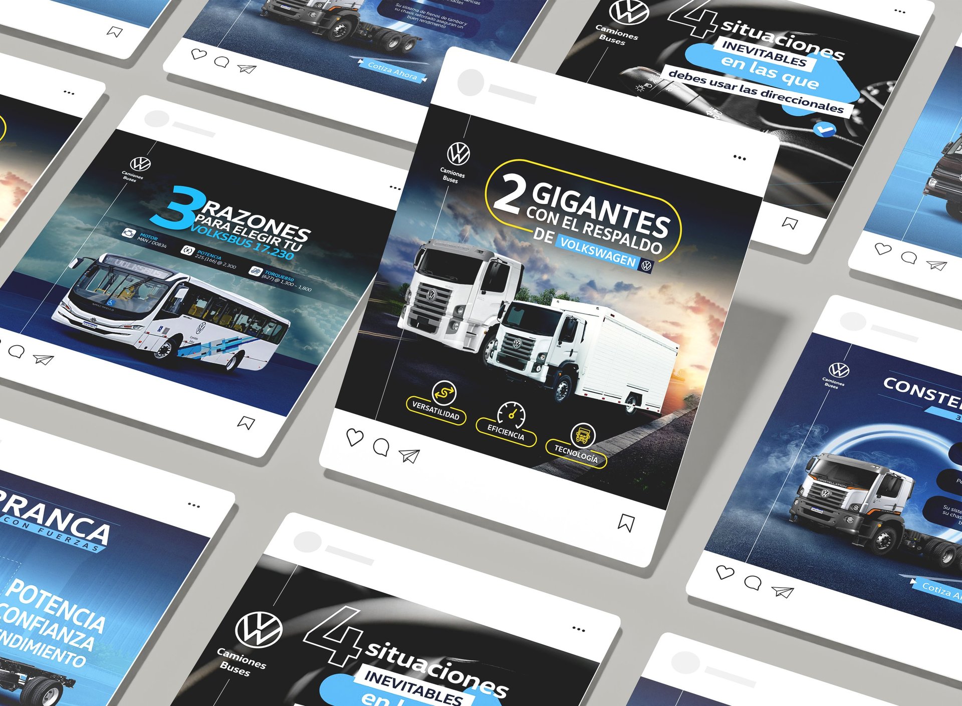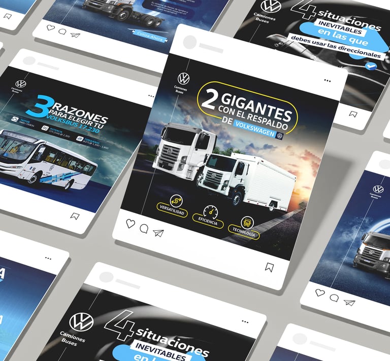 Diseñé un ecosistema de piezas donde la limpieza visual permite que el producto sea el protagonista. Utilicé composiciones sólidas con tipografías pesadas y contrastes en tonos oscuros para reforzar esa sensación de fuerza que caracteriza a modelos como el Delivery o los Volksbus. En el área de email marketing, estructuré boletines modulares con iconografía clara y botones de acción ubicados estratégicamente, facilitando que el usuario pasara del interés a la cotización de forma natural.