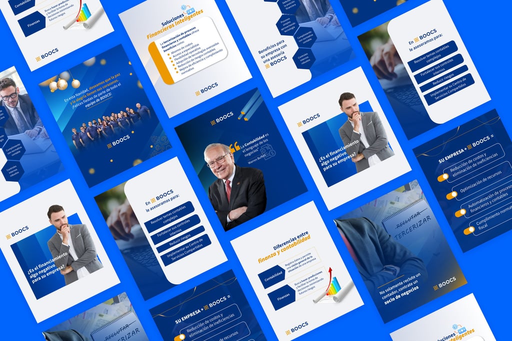 BOOCS buscaba revitalizar su imagen en redes sociales, manteniendo su identidad centrada en la experiencia y la innovación. Era crucial proyectar un servicio de alto nivel, respaldado por la adopción de herramientas tecnológicas avanzadas y una consultoría experta en procesos financieros. Además, se requería el diseño de dos landing pages dedicadas a la automatización de procesos empresariales y consultorías financieras, con el fin de captar leads y reforzar la comunicación con clientes potenciales.